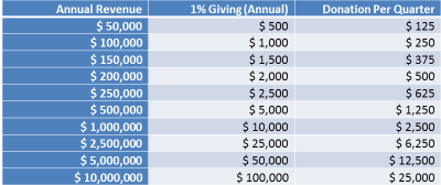 If you’re a business leader who’s interested in becoming more strategic about corporate giving, perhaps contributing 1% of your business’s annual revenue, give us a call. In fact, contact us if you’ve already given 1%…you never know, we might be interested in promoting your community leadership in effective and innovative ways.